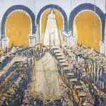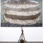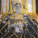 Canvas on board, recycled flooring, concrete, acrylic, enamel and spray paint, string, concretised canvas, metal, gold leaf